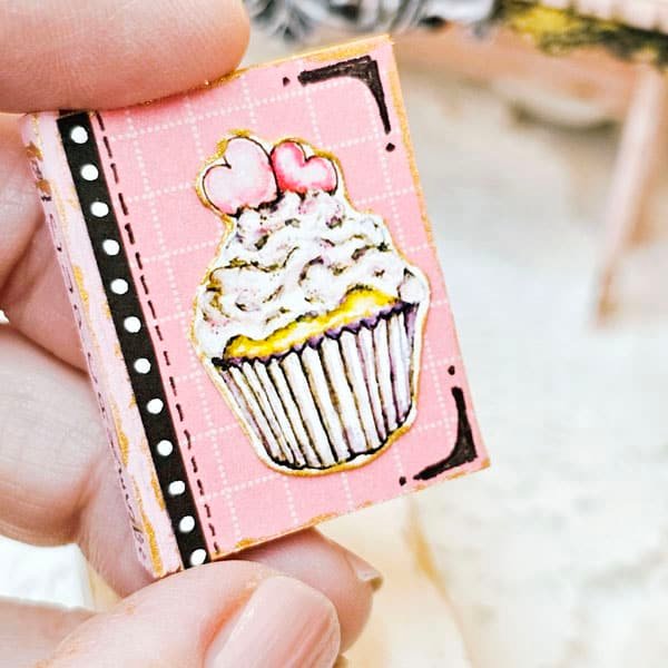 My handmade miniature books Prints on the books are from my original watercolors. The wooden book sides are painted pink. The the pages are brushed with gold for an elegant style.
