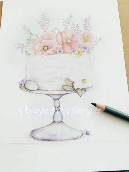 A pretty cake with roses and a speckled bird egg. Ready for greeting cards, scrapbooking or print it out and frame to hang in the kitchen. A print from my original watercolor painting.