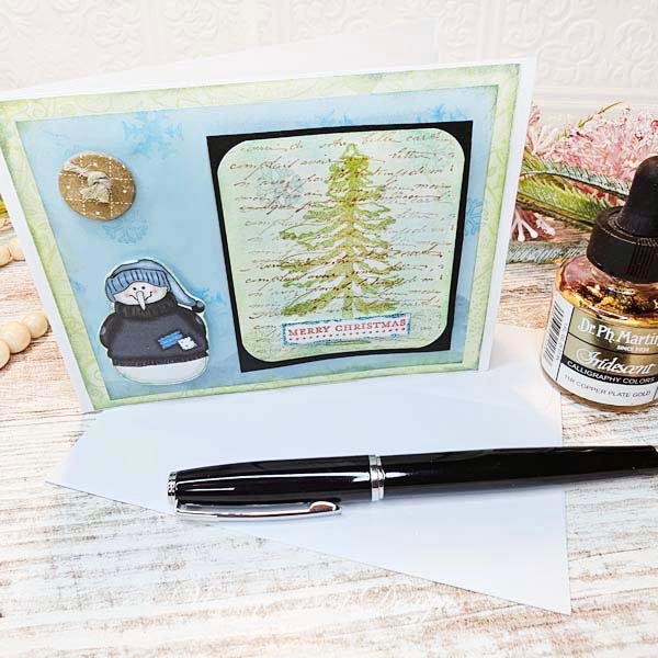 A handmade Christmas card. The inside of the card has been left blank for you to write your personal message in. It comes with a white envelope. These are great to keep on hand or give as a gift to family, co-workers, and friends.