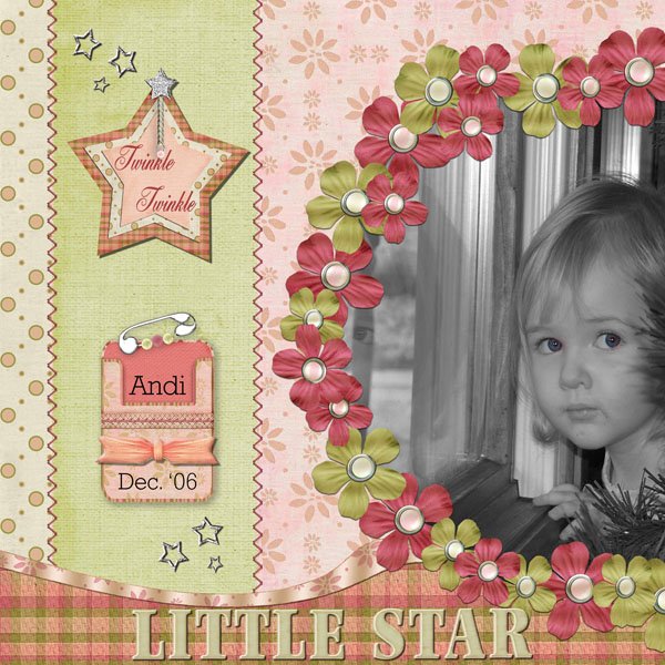 A sweet little girl’s digital scrapbooking kit with many fun elements to play with. Designed by me in Photoshop.