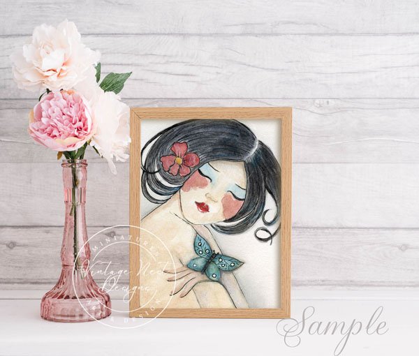 Tags: digital download, digital printable, doll print, doll wall art, instant download, junk journal, oriental woman, wall hangings, watercolor doll, watercolor painting, woman watercolor