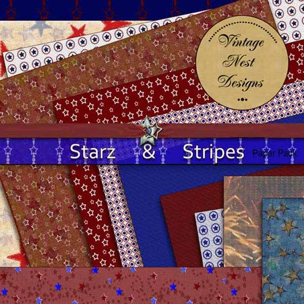 Starz & Stripes Kit Digital Scrapbooking Illustration